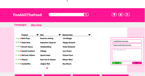 Amelia works in the marketing department of a massive food conglomerate. They run periodic campaigns via their Siebel CRM and are constantly in need of new and fresh ideas. The company wants to encourage their best creative minds to think across their product range and to share their ideas at inception. This would allow the team in charge of a product easy access to a vast repository of the team’s organic ideas, useful when considering what’s to be included in the next marketing campaign.